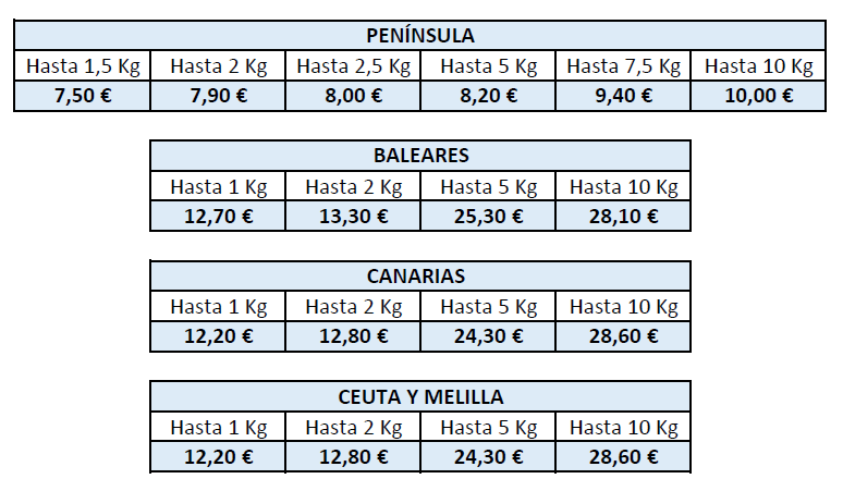 LA EMPRESA garantiza el envío en los plazos y zonas indicadas de todos los productos que tenemos en stock para todos los pedidos que sean recibidos en nuestras oficinas hasta las 13:00 horas (LUNES - VIERNES), una vez autorizado el pago. Los pedidos recibidos en sábados, domingos y festivos se considerarán recibidos el primer día laborable posterior al mismo.