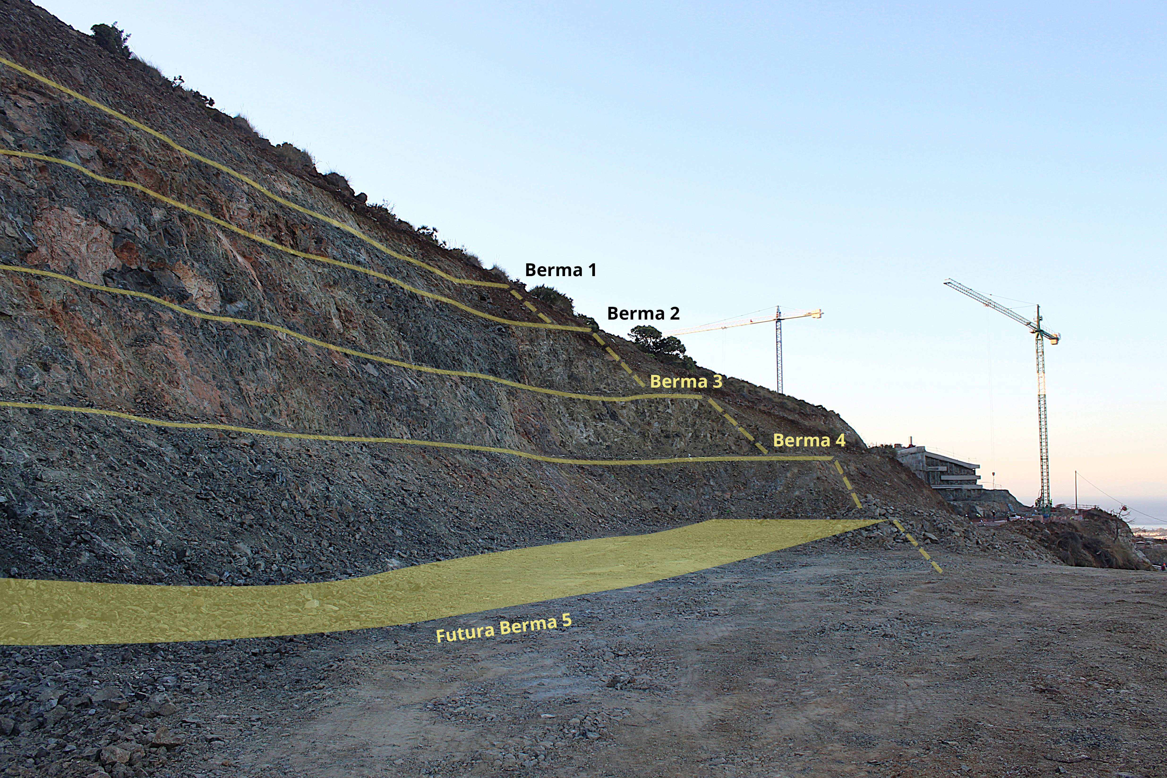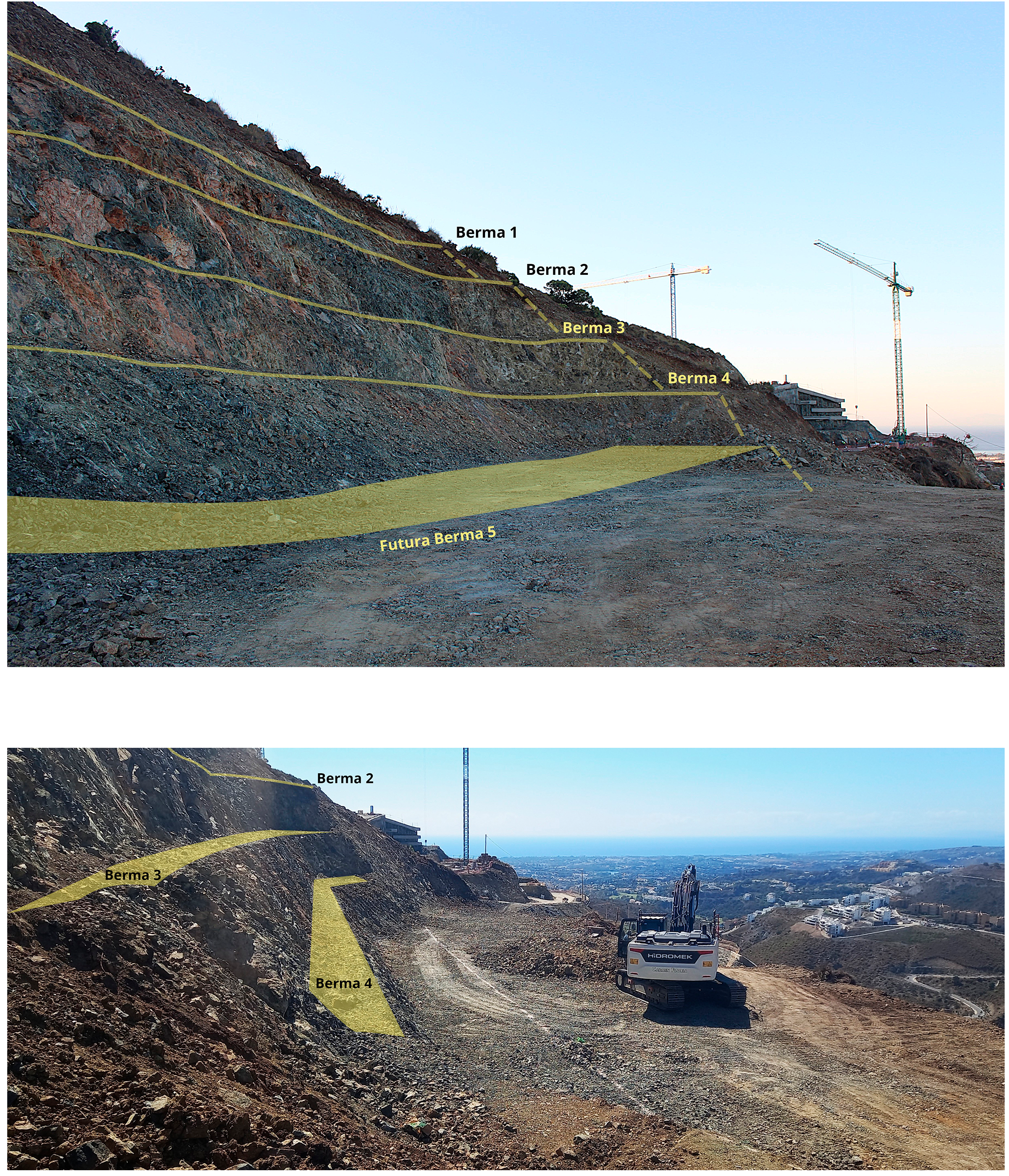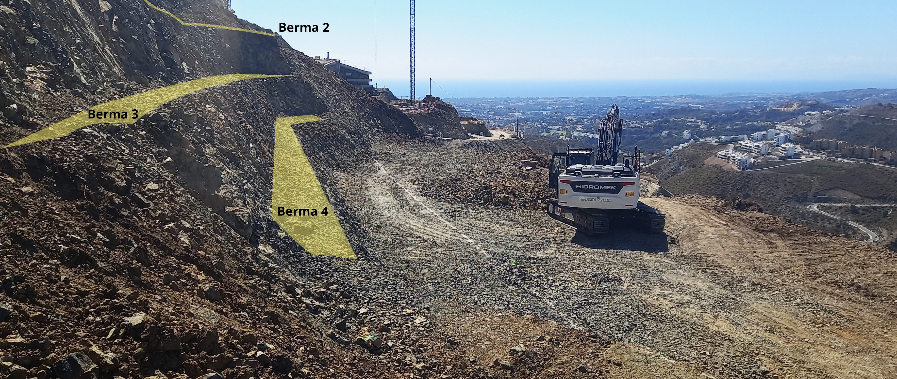 Las bermas son fajas de terreno aterrazadas que reducen la presión sobre la base del talud, favoreciendo la estabilidad de la ladera.