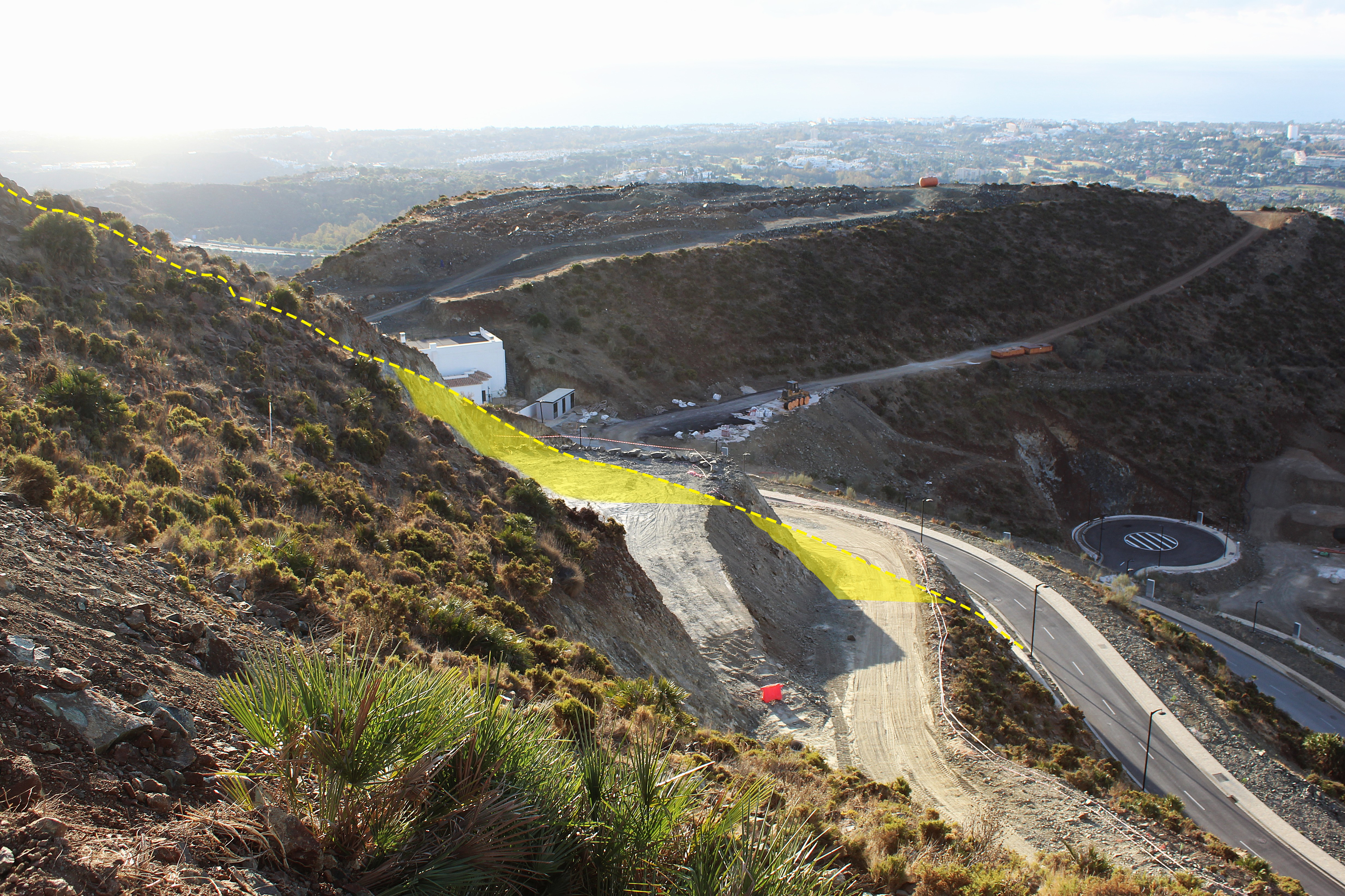 En la misma ladera o talud, doble desmonte: para ubicar un edificio (arriba) y un vial (abajo)