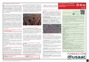 D 01.01 CASO PRÁCTICO 6 ACCESIBILIDAD Accesibilidad en Entornos Urbanos Recintos Públicos AUTOR: Manuel A. Burguillos González COLABORADOR: Alberto Moreno Cansado DELINEACIÓN: M. Burguillos FOTOGRAFÍA: M. Burguillos FUNDACIÓN MUSAAT C/ Jazmín, 66. 28.033 MADRID www. fundacionmusaat.musaat.es NOTA: Los conceptos, datos y recomendaciones incluidas en este documento son de caracter orientativo y están pensados para ser ilustrativos desde el punto de vista divulgativo, fundamentalemente desde una perspectiva teórica, así como redactados desde la experiencia propia en procesos de apdatación e implantación de mejoras de accesibilidad. DOCUMENTO DE ORIENTACIÓN TÉCNICA EN EDIFICACIÓN 01 /03 En las últimas décadas, el urbanismo en España ha evolucionado signifi cativamente, enfocándose cada vez más en la creación de ciudades inclusivas y accesibles para todos sus habitantes. Este cambio responde a la necesidad de garantizar que todas las personas, independientemente de sus capacidades físicas, sensoriales o cognitivas, puedan disfrutar de los espacios urbanos de manera equitativa. La evolución de la accesibilidad en estos campos ha sido impulsada por una serie de normativas y avances técnicos que han buscado eliminar las barreras físicas en los entornos urbanos y edifi caciones y es que las ciudades se desarrollaron sin considerar plenamente las necesidades de accesibilidad debido principalmente a criterios históricos y sociales sin tener en cuenta las necesidades sociales y el derecho de igualdad de todas las personas . Con el avance de las normativas y la creciente conciencia social, se han implementado políticas y proyectos que buscan transformar el entorno urbano. La Ley General de Derechos de las Personas con Discapacidad y de su Inclusión Social, aprobada en 2013, es un ejemplo clave de este compromiso legislativo Breve historia de la accesibilidad en la edifi cación y urbanismo en España. 1. Primeros Intentos de Accesibilidad (Antes de 1982) Antes de la década de 1980, las edifi caciones y los entornos urbanos en España no estaban pensados para garantizar la accesibilidad de las personas con discapacidad. No existían normativas claras que obligaran a la adecuación de edifi cios, espacios públicos o infraestructuras para personas con movilidad reducida o discapacidades sensoriales. - Ausencia de normativa: No existía un marco legal específi co para la accesibilidad en edifi cios y espacios públicos. - Proyectos aislados: En algunas ciudades, de manera aislada, algunos edifi cios o urbanizaciones incorporaban adaptaciones, pero sin una directriz general. 2. Primeras Normativas de Accesibilidad en la Edifi - cación (1982-1995) A partir de 1982, con la promulgación de la Ley 13/1982 de 7 de abril, de integración social de los minusválidos, se dio un primer paso para la integración de las personas con discapacidad en la sociedad española. Esta ley abordaba, entre otros aspectos, la accesibilidad en edifi cios públicos y espacios urbanos, aunque de manera incipiente. 3. La Ley de Accesibilidad Universal (1995-2003) Con la aprobación de la Ley 51/2003, también conocida como la Ley de Igualdad de Oportunidades, No Discriminación y Accesibilidad Universal, España dio un gran paso en cuanto a la legislación de la accesibilidad en todos los ámbitos, incluyendo la edifi cación y el urbanismo. Dicha ley obligó a que todas las nuevas construcciones y reformas de edifi cios públicos y privados fueran accesibles, incluyendo rampas, ascensores y puertas anchas. Las ciudades comenzaron a considerar la accesibilidad en su planifi cación urbanística, mejorando el acceso a espacios públicos y transporte. 4. El Código Técnico de la Edifi cación y la Accesibilidad (2006-2024) En 2006, el Código Técnico de la Edifi cación (CTE) introdujo normativas más específi cas en cuanto a la accesibilidad en edifi caciones. Estas regulaciones fueron clave para garantizar que los nuevos edifi cios y los proyectos de rehabilitación cumplieran con criterios de accesibilidad universal. - CTE y la accesibilidad: En el Documento Básico de Seguridad de Utilización y Accesibilidad (DB-SUA), se establecieron los requisitos técnicos para garantizar la accesibilidad en las edifi caciones, incluyendo criterios para la adaptación de puertas, pasillos, ascensores, baños accesibles, etc. PREMIOS Access City Award Vista aérea de Barcelona. Fuente: iStock Vista Aérea de Sevilla. Fuente: iStock El ACCESS CITY AWARD es un premio organizado por la Comisión Europea desde 2010, en colaboración con el Foro Europeo de la Discapacidad, que reconoce a las ciudades que han hecho esfuerzos signifi cativos para ser más accesibles para las personas con discapacidad. Este premio no solo mejora la calidad de vida de las personas con discapacidad, sino que también benefi cia a todos los ciudadanos. A lo largo de los años, varias ciudades españolas han sido reconocidas por sus esfuerzos en accesibilidad: Ávila: Ganadora en 2011, conocida por su enfoque integral en la accesibilidad del patrimonio histórico. Barcelona: Finalista en varias ocasiones y ganadora del tercer lugar en 2022. Santander: Reconocida por sus esfuerzos en accesibilidad urbana. Terrassa: Destacada por sus mejoras en el transporte y espacios públicos. Bilbao: Premiada por su accesibilidad en el entorno urbano. Pamplona: Conocida por sus iniciativas en accesibilidad en espacios públicos. Burgos: Reconocida por sus esfuerzos en accesibilidad en edifi cios públicos. Málaga: Destacada por sus mejoras en accesibilidad en el transporte. Logroño: Premiada por sus esfuerzos en accesibilidad en la comunicación y la información. Vigo: Reconocida por sus iniciativas en accesibilidad en espacios públicos. Castellón de la Plana: Destacada por sus mejoras en accesibilidad en el entorno urbano. Córdoba: Ganadora en 2023, reconocida por sus esfuerzos en accesibilidad en el transporte y espacios públicos. Mérida: Ta