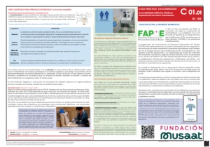 C 01.01 CASO PRÁCTICO 8 ACCESIBILIDAD Accesibilidad Edifi cios Públicos Implantación de Aseos Ostomizados AUTOR: Manuel A. Burguillos González COLABORADOR: Alberto Moreno Cansado DELINEACIÓN: M. Burguillos / V. Borrallo FOTOGRAFÍA: M. Burguillos FUNDACIÓN MUSAAT C/ Jazmín, 66. 28.033 MADRID www. fundacionmusaat.musaat.es NOTA: Los conceptos, datos y recomendaciones incluidas en este documento son de caracter orientativo y están pensados para ser ilustrativos desde el punto de vista divulgativo, fundamentalemente desde una perspectiva teórica, así como redactados desde la experiencia propia en procesos de apdatación e implantación de mejoras de accesibilidad. DOCUMENTO DE ORIENTACIÓN TÉCNICA EN EDIFICACIÓN 02 /03 ASEO OSTOMIZADO. Características básicas Si bien, la opción ideal es la del uso exclusivo para este colectivo, no siempre se podrá optar por dicha solución. Por ello, a continuación hacemos relación de cómo deberá dotarse el espacio de uso con las siguientes características: Inodoro: el inodoro ha de estar homologado como tal y contar con sifón para evitar el retorno de olores tras tirar de la cisterna. Estará colocado entre 73 y 75 cms del suelo. No son válidos los retretes infantiles, porque al tirar de la cisteran salpican fuera y porque difi cultan la manipulación de la bolsa de ostomía encima el mismo dado su tamaño reducido y su poca profundidad. Encimera encastrando al inodoro: para colocar los productos necesarios para el cambio de bolsa. Tiene que estar al mismo nivel que el inodoro y así evitar la caída de los productos al suelo. Con un ancho mínimo de 60 a 70 cm y quedando el retrete a no más de 7 cm del borde de la encimera para evitar que el usuario tenga que inclinarse sobre ella en exceso. Enjuagador de bolsa con cable extensor: Debe estar situado en el lado derecho. Es muy importante el modelo de enjuagador de bolsa, no vale un grifo extensible, se tiene que poder accionar con el pulgar de la mano como el que se muestra en las imágenes (ver hoja siguiente). Un grifo extensible no es válido, porque antes de abrir el fl ujo de agua no podremos tenerlo ya orientado hacia el orifi cio de la bolsa, provocando que esta se moje por fuera antes de que el agua entre en ella. Grifo monomando. En ningún caso servirá para sustituir al enjuagador. El aseo adaptado ha de contener tanto monomando como el enjuagador. Espejo: situado frente al usuario a ras del inodoro para poder verse el estoma situado a la altura del abdomen. Éste no debe tener en medio el pulsador de cisterna, ni ningún otro accesorio que difi culte la visualización del estoma. Portarrollos de papel: situado en un lateral, a una altura máxima de 1,30 m. Dispensador de jabón: situado en un lateral a una altura máxima de 1,30 m. Peldaño/Escalón portátil: para que personas más bajas de lo habitual o niños, puedan usar el baño. (Medidas mínimas aconsejables 50x30x20). Perchas: una cercana al inodoro o zona de cambio y otra como colgador de bolsos/prendas. Contenedor de pañales: para tirar las bolsas tras el cambio y que no den olor. Iluminación: la luz no debe apagarse ni con temporizador ni con sensor de movimiento. Señalética: se colocará pictograma bien visible y en relieve, tanto junto al marco de la puerta, como en el caso de compatibilizar con aseos accesibles, en la propia instalación sanitaria. TABLA 2. Comparativa CTE y Normativa regional (Galicia, C. de Madrid, Melilla, Murcia, La Rioja y Pais Vasc) TABLA COMPARATIVA 2 CARACTERÍSTICAS ASEOS PMR y ASEO OSTOMIZADO Integrado Pendiente de aprobación: En el Senado de España, el día 13 de octubre de 2021, se aprobó por unanimidad la moción que insta a “seguir mejorando la accesibilidad de los edifi cios públicos de manera que los aseos se adapten a las personas ostomizadas… y a promover medidas de sensibilización y concienciación social sobre la necesidad de mejorar la accesibilidad de los edifi cios privados, de manera que los aseos se adapten a las necesidades de las personas ostomizadas, de cara a garantizar su participación social”. Elemento Aseo para Personas Ostomizadas Aseo Accesible Típico (PMR - Silla de Ruedas) Función Principal Higiene, vaciado y cambio del dispositivo de ostomía con total privacidad y apoyo . Transferencia (sentarse/levantarse) y maniobrabilidad con silla de ruedas. Altura del Inodoro Elevada: 73 - 75 cm desde el suelo (sin tapa). La altura es crucial para que la persona ostomizada pueda manipular la bolsa sin agacharse excesivamente y verse el estoma. Baja: 45 - 50 cm desde el suelo. La altura es clave para facilitar la transferencia lateral desde la silla de ruedas. Espacio de Maniobra No requiere el círculo de giro de 150 cm o la transferencia lateral estricta (salvo que se diseñe para ser mixto PMR/Ostomizado). Requisito legal esencial: Espacio de giro de ≥150 cm de diámetro libre y espacio de transferencia lateral de ≥80 cm al inodoro. Superficie de Apoyo Obligatoria y específica. Requiere una encimera o repisa de apoyo a baja altura y cercana al inodoro para manipular los utensilios y la bolsa. Secundaria. El lavabo suele ser el principal punto de apoyo frontal, pero no hay un requisito estricto de repisa junto al inodoro. Punto de Limpieza Grifo enjuagador o ducha de mano (con gatillo), operable con una mano. Debe estar conectado idealmente solo a agua fría o templada, y posicionado estratégicamente. Desagüe sobredimensionado. Inexistente (solo el lavabo o la ducha/manguera en el caso de aseos con ducha). Espejo Colocación baja (a la altura del ombligo) o inclinable. El usuario necesita ver el estoma en el abdomen. Colocación alta (parte inferior a ≤90 cm del suelo) e inclinable, diseñado para ser utilizado desde una silla de ruedas. Iluminación Ventilación La luz no debe ser temporizada ni controlada por sensor de movimiento para evitar que se apague durante el proceso de higiene (que puede ser prolongado). Generalmente, se permit